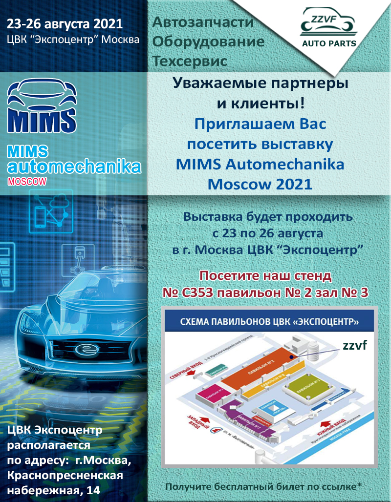 Дорогие Дамы и Господа! Приглашаем Вас посетить Юбилейную 25-ю Международную выставку запасных частей и автокомпонентов MIMS Automechanika Moscow 2021.