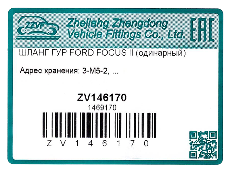 - фирменная наклейка, на которой есть описание товара, адрес хранения, номер детали, штрих код, QR-code.